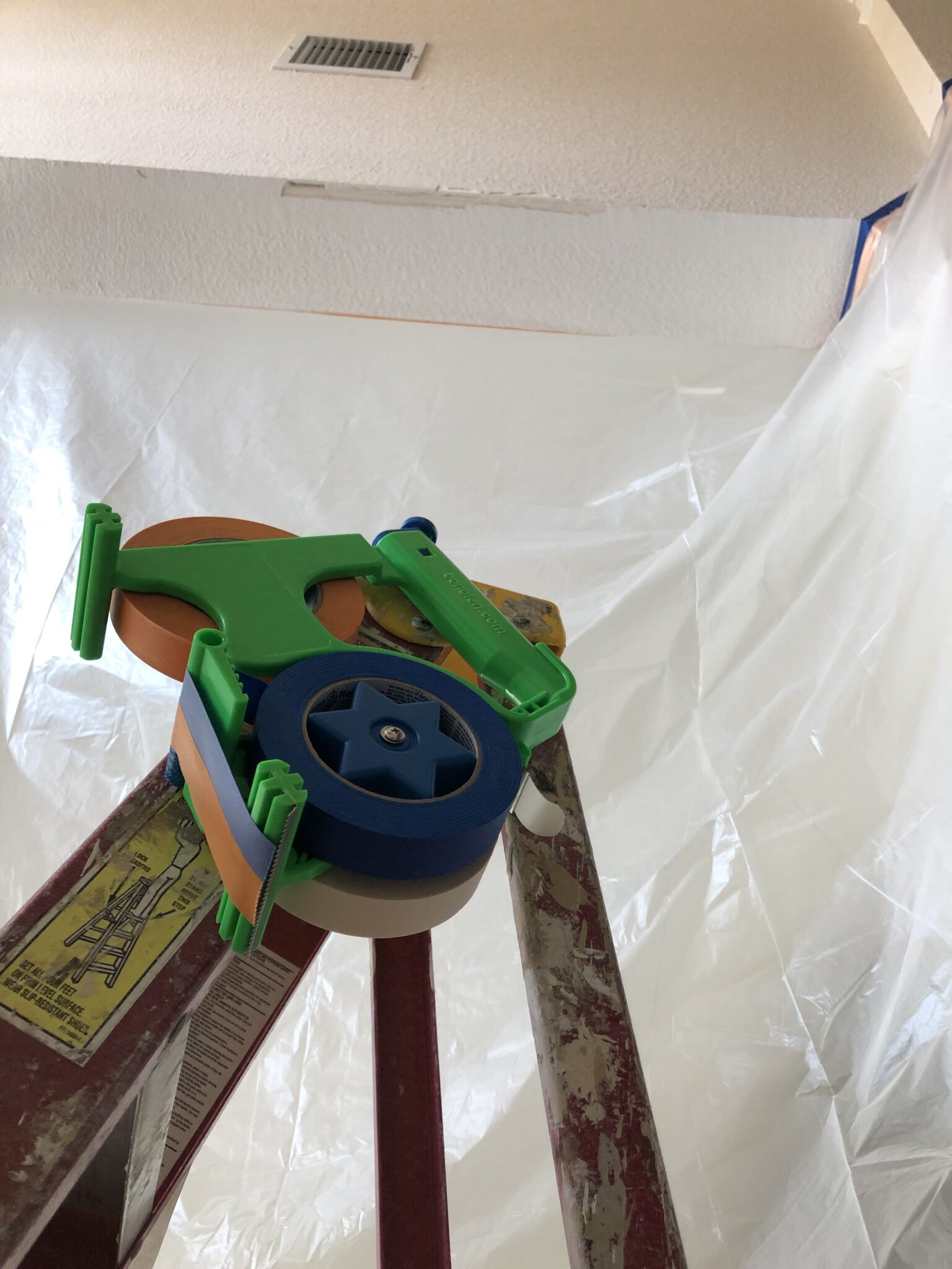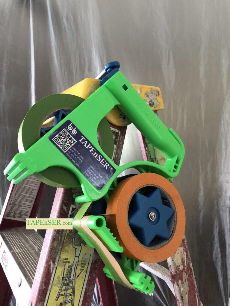 When prep work is done properly to cover/mask surfaces or seal off spaces, including doors, windows, window coverings (Curtains/drapes, miniblinds, shutters, etc.), picture frames, wall decorations, and paintings… You will be confident to do the job efficiently! Even when you use the masking film with one edge pre-taped, you still need TAPEnSER to tape both side edges and the bottom edge. Good prep work means quality results!